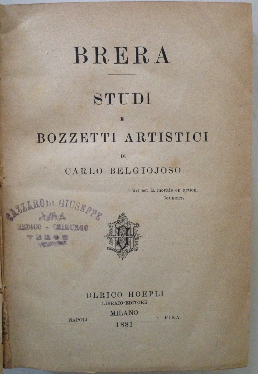 Brera Studi e Bozzetti Artistici di Carlo Belgiojoso Hoepli Milano 1881