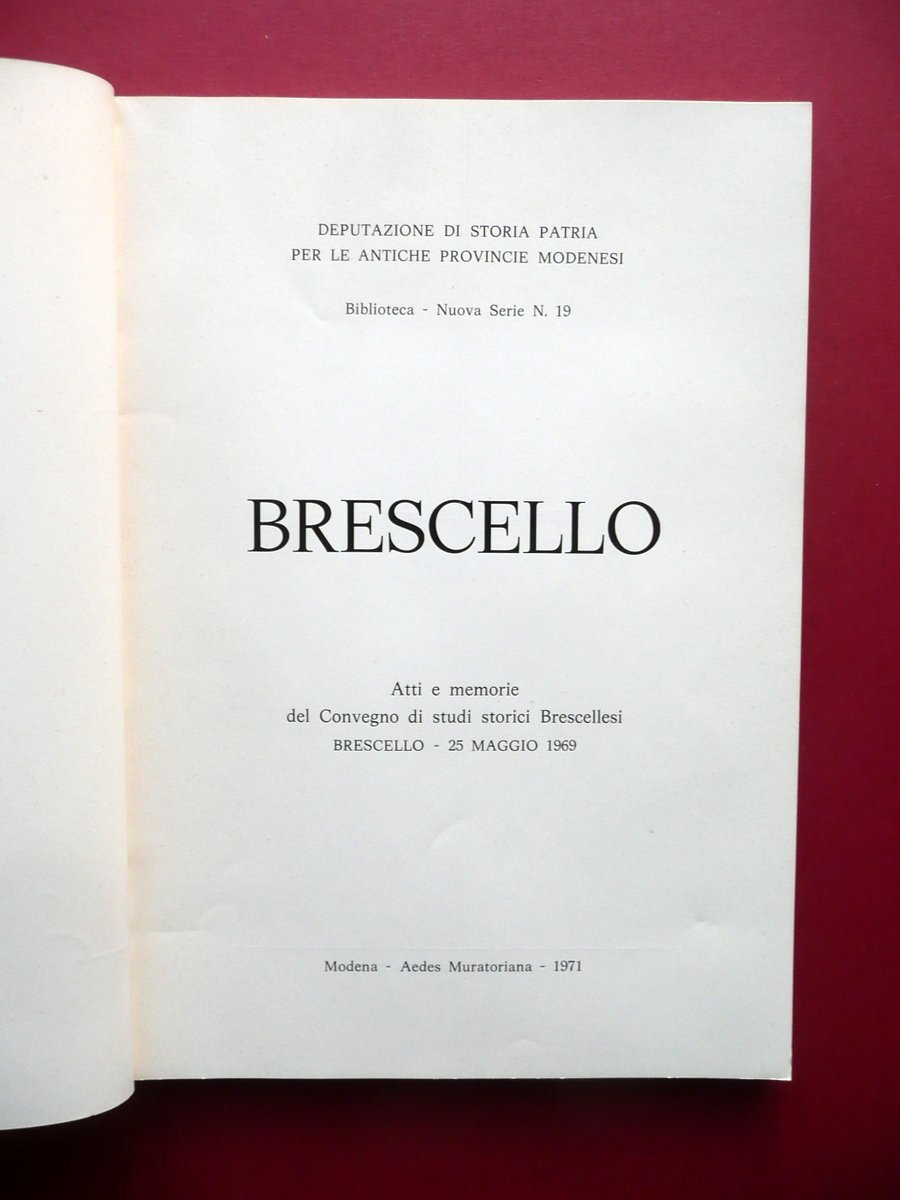 Atti Convegno, Brescello Atti e memorie del Convegno di studi storici Brescellesi 25 Maggio 1969 Aedes Muratoriana, Modena, 1971; cm. 24x17, pp. 146; con ill. in b/n n.t. e a p.pag.; br. ed. Condizioni di conservazione Esemplare in buono stato con leggere tracce d'uso, brossure con pressoché trascurabili accenni di sporco. Interni ottimi. SETT144.L14313 MT