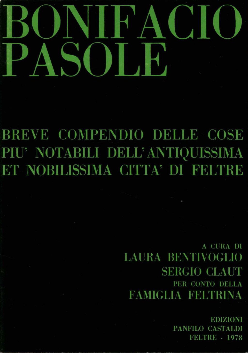 Breve compendio delle cose più notabili dell'antiquissima, et nobilissima città di Feltre, comintiando dalla sua fondatione sino all'anno dell'humana salute 1580. A cura di Laura Bentivoglio e Sergio Claut.
