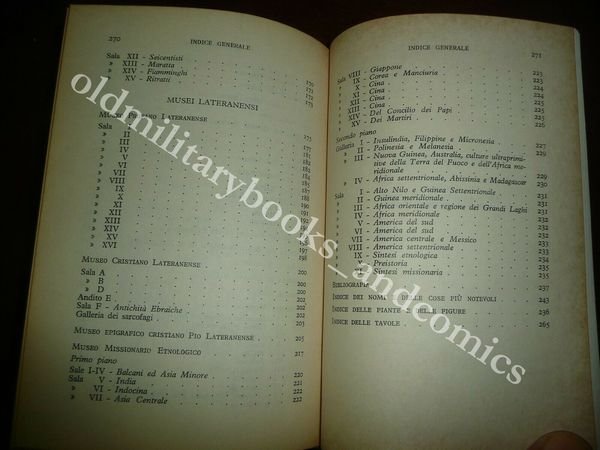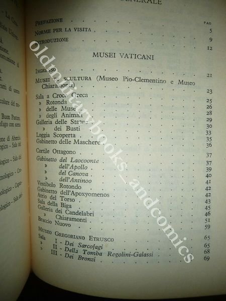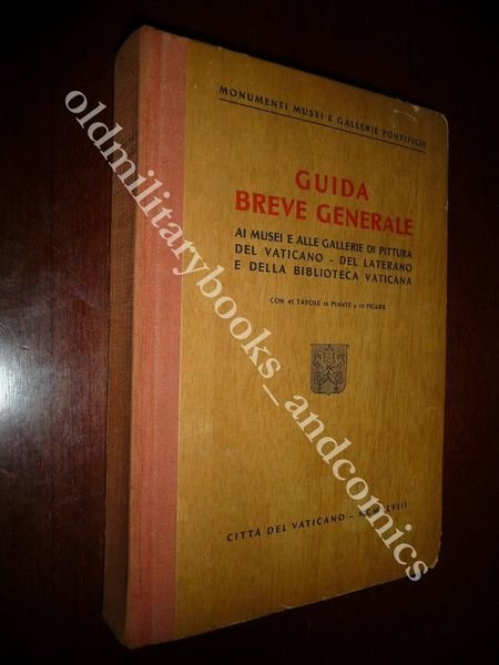 TITOLO: BREVE GUIDA GENERALE AI MUSEI E ALLE GALLERIE DI PITTURA DEL VATICANO - DEL LATERANO E DELLA BIBLIOTECA VATICANA DESCRIZIONE: Città del Vaticano Roma 1948, br. ed. ca. in mz. tela, pp. 271 con 45 tavole, 16 piante e 12 figure n.t. e f.t. in 16°. CONDIZIONI: Buone, vol. con lievi abrasioniagli angoli e pag. ingiallite all'interno. PESO / WEIGHT: 400 gr. without package