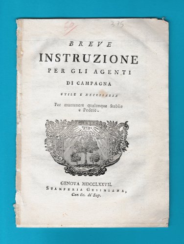BREVE INSTRUZIONE PER GLI AGENTI DI CAMPAGNA UTILE E NECESSARIA PER MANTENERE QUALUNQUE STABILE E PODERE