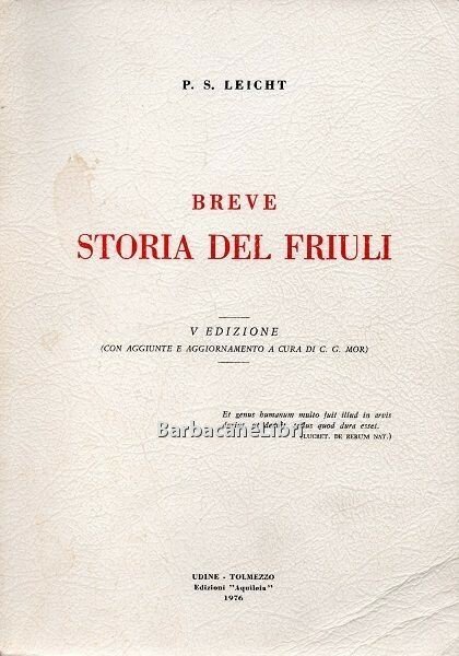 Quinta edizione dell'opera di Leicht (apparsa per la prima volta nel 1922), con aggiunte e aggiornamento a cura di Carlo Guido Mor.