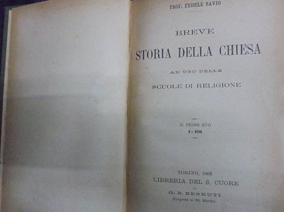 TORINO, LIBRERIA DEL S. CUORE, 1903. Il Primo Evo 1 - 476. In 8∞: pp. VII + 136. Segue leg. assieme: Il Medio Evo 476 - 1492. pp. VII + 222. Segue leg. assieme: Evo moderno 1492 - 1903. pp. VII + 175. Leg. t. tl. non edit. con lievi mende. Bruniture.