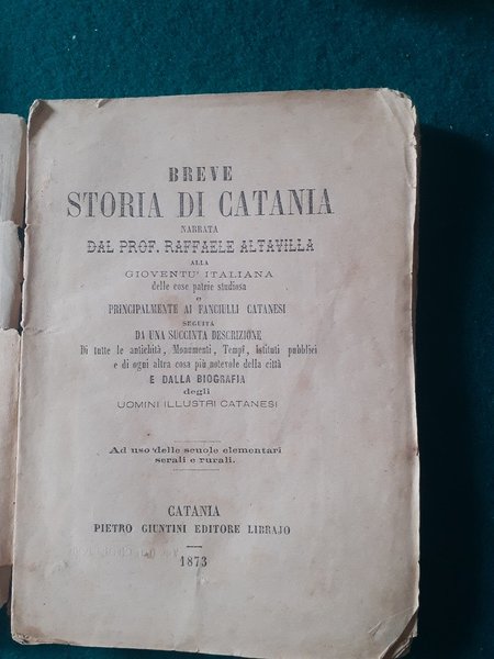 BREVE STORIA DI CATANIA. NARRATA ALLA GIOVENTU' ITALIANA. PRINCIPALMENTE AI FANCIULLI CATANESI.