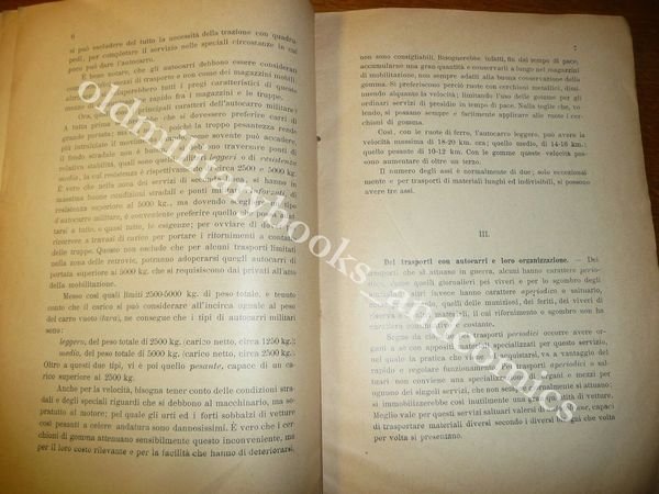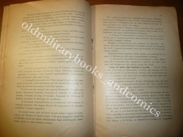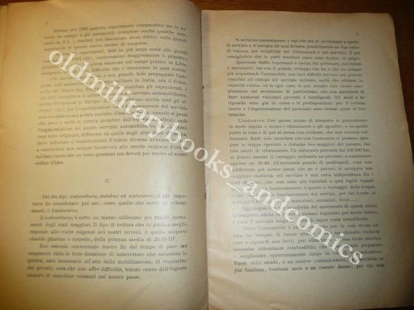 DESCRIZIONE: Tip. Enrico Schioppo Torino 1914 br. ed. pp. 14 in 8° . Il volumetto è una pubblicazione fuori commercio destinata agli allievi dell'Accademia Militare. E' altresì uno dei primi studi sull'impiego dell'automobile in guerra, mezzo di cui ancora non si era compreso appieno le potenzialità. Impiego nei trasporti, ed organizzazione, servizio viveri, etc. Dire che questo libro è raro è un eufemismo, è un libro CHE NON ESISTE. NON E' CENSITO IN NESSUNA biblioteca dall'SBN e totalmente ASSENTE da tutti i cataloghi delle librerie specializzate in militaria e assente online. CONDIZIONI: Buone/Ottime firma normali tracce d'uso. PESO / WEIGHT: 39 gr. without package