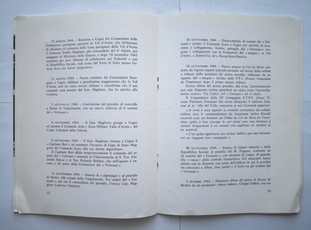 BREVI CENNI SULLA FORMAZIONE PARTIGIANA DI VERTOSAN IN VALLE D'AOSTA 1978 Libro