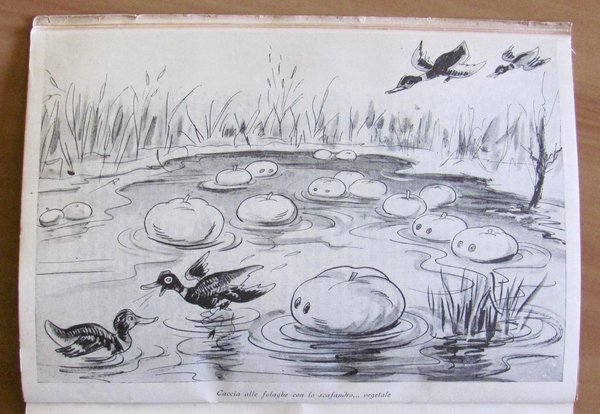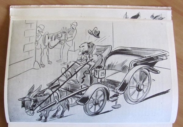 Moltissime illustrazioni satiriche-umoristiche in b/n n.t., di cui molte a piena pagina, e foto n.t. Arti Grafiche Danesi - Roma, 1944. Brossura editoriale con piccole usure in alto e basso al dorso. 17,5x24,5; pp.103 + 19 di spartiti musicali in fine. Buonissimo stato. , Molto buono (Very Good)