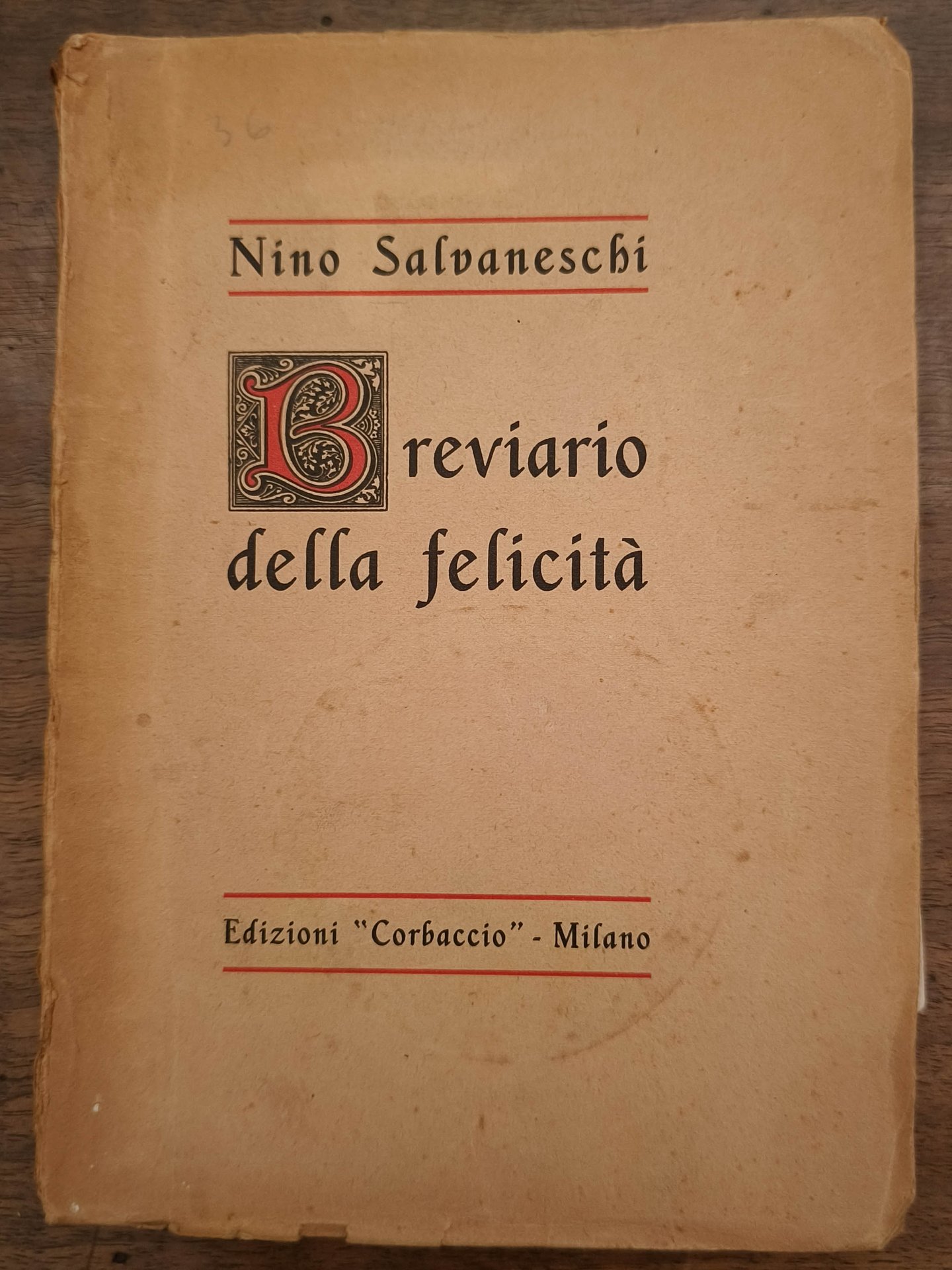 Breviario della felicità, Milano, Corbaccio, 1928. Cm 19,5. Pp. 112. Brossura editoriale sciupata. Dedica autografa dell'autore "al grande ufficiale Cardilli devotamente e cordialmente".