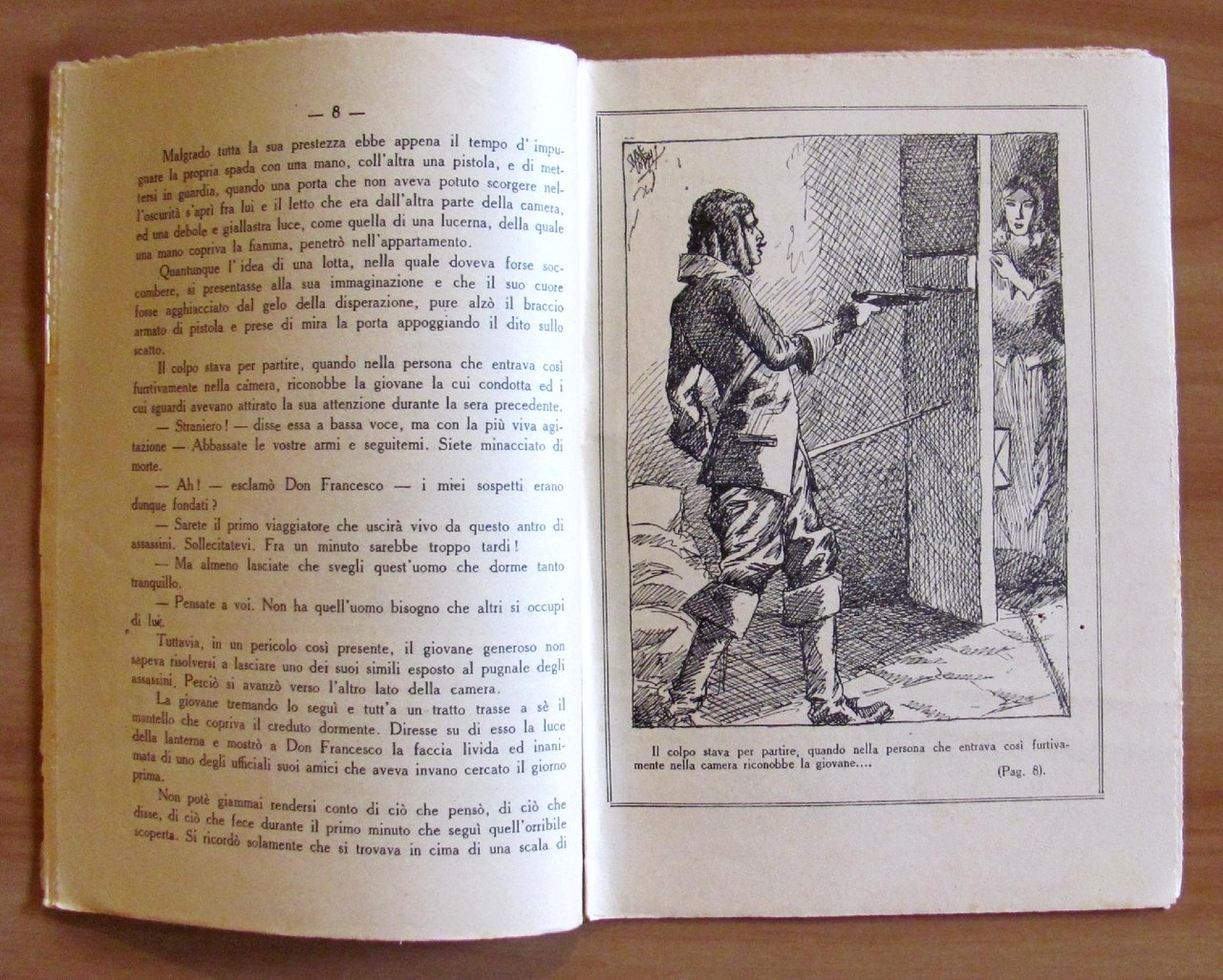 Copertina a colori e 2 illustrazioni in b/n, a piena pagina, n.t. di Giove Toppi. Editore Nerbini - Firenze, 1929. Brossura editoriale con piccolissima spellatura della carta, di 1cm, in retrocopertina, peraltro freschissimo. 14x20,5; pp.32. Raro e in Buonissimo stato. , Molto buono (Very Good)