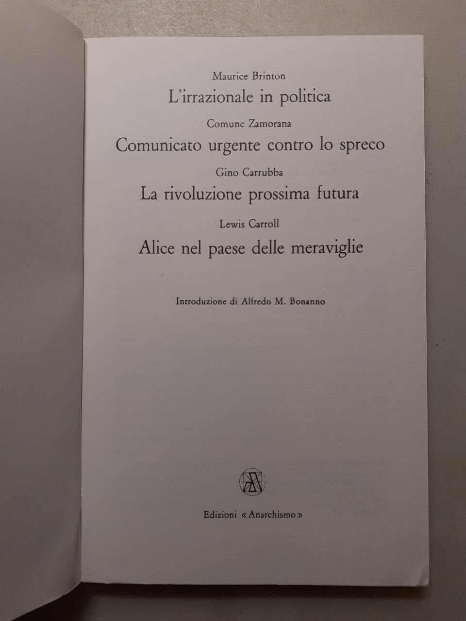 Brinton/ Comune Zamorana,IRRAZIONALITA E RIVOLUZIONE Edizioni Anarchismo,1990