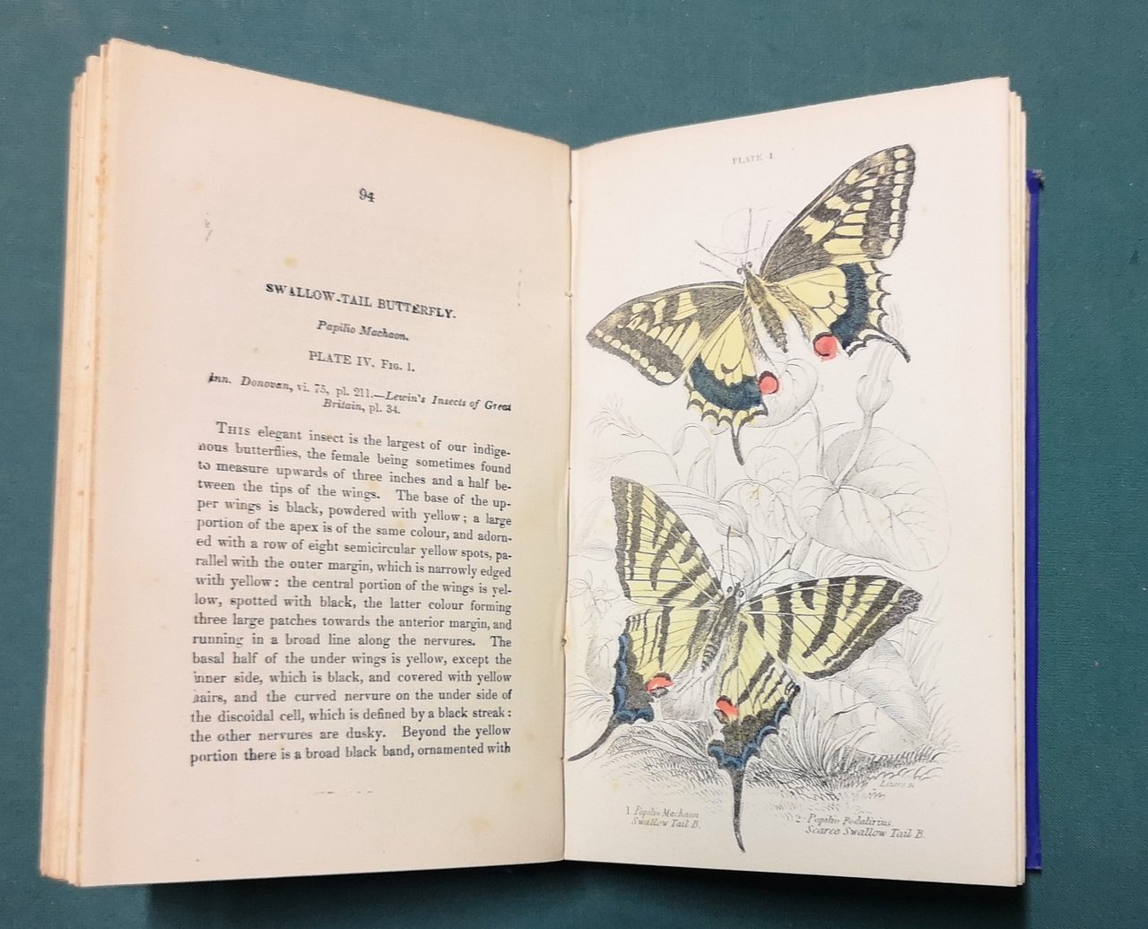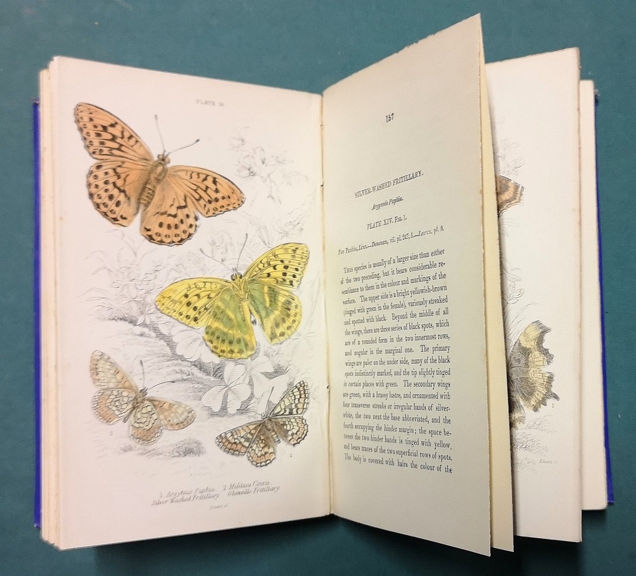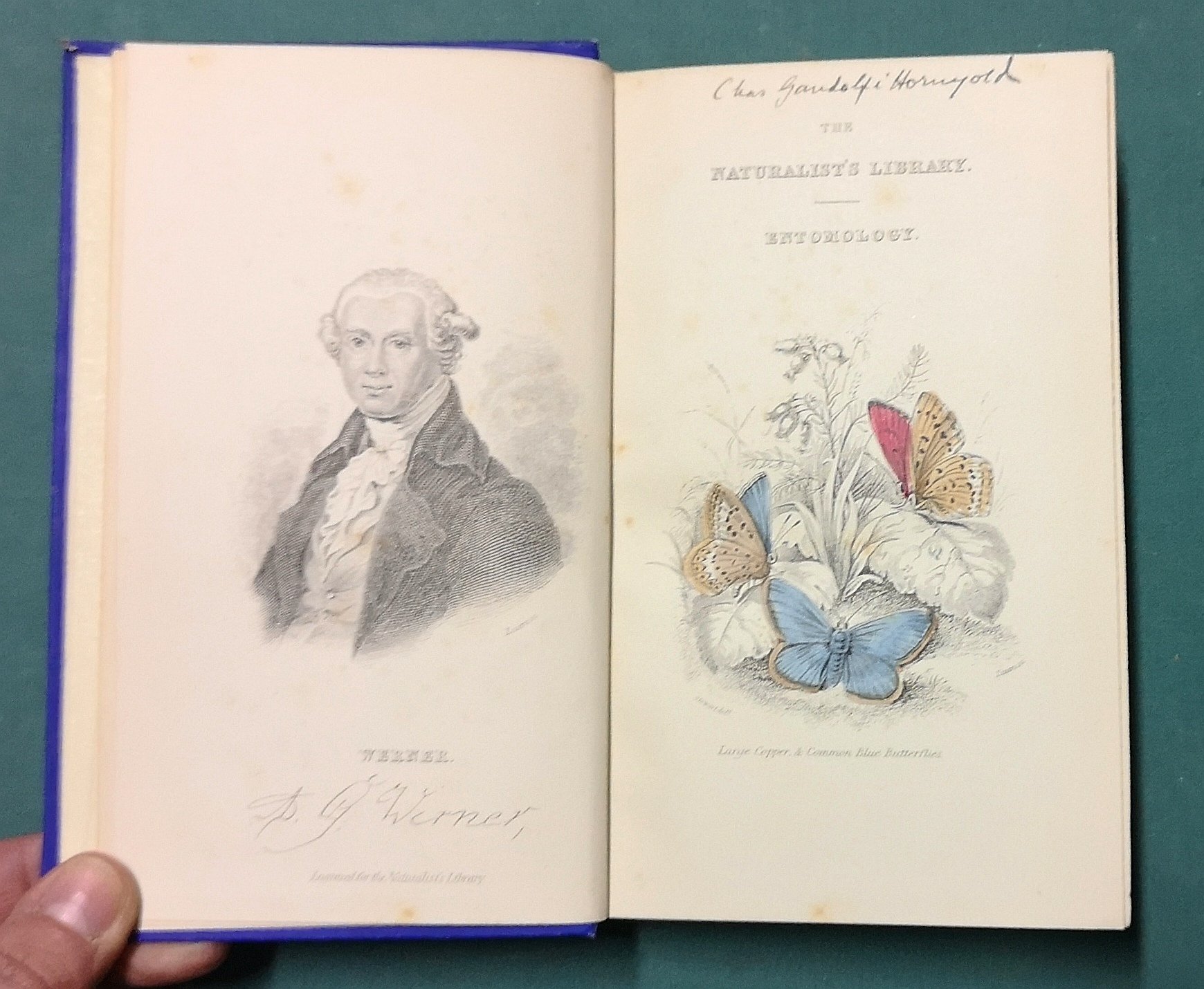 >in-8, pp. 246, ritratto in antiporta, frontespizio inciso e colorato, 34 tavole incise e parzialmente colorate (solo le farfalle e i bruchi sono a colori). Legatura editoriale in tela azzurra, con titoli e decorazioni in oro. Questo volume fa parte di una serie di libri che furono pubblicati come parte di The Naturalist's Library, il cui scopo era quello di rendere la storia naturale disponibile a tutti i livelli della società vittoriana. La serie fu curata da Sir William Jardien, 7° baronetto di Applegirth (1800-1874); include anche una "memoria" su Abraham Gottlob Werner (1749-1817), un geologo tedesco che è stato definito il "padre della geologia tedesca", e un resoconto della Wanerian Natural History Society (1808-1858). Buon esemplare (dorso lievemente consumato, piccole macchiette di umidità).