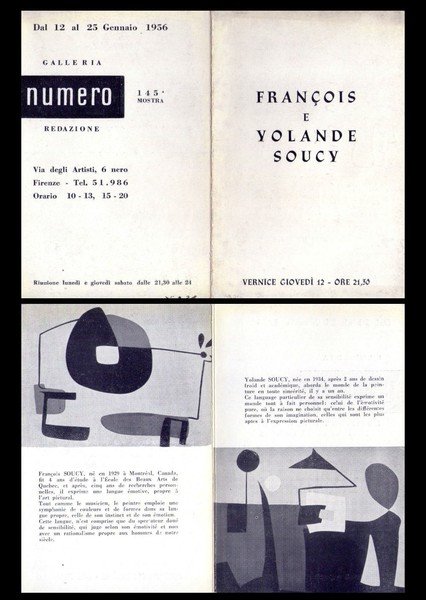 Brochure 145° mostra Francois e Yolande Soucy. Galleria NUMERO - Milano dal 12 al 25 gennaio 1956