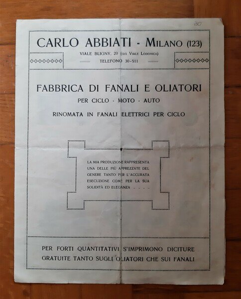 Brochure Carlo Abbiati - Milano. Fabbrica di fanali e oliatori per ciclo/moto/auto.