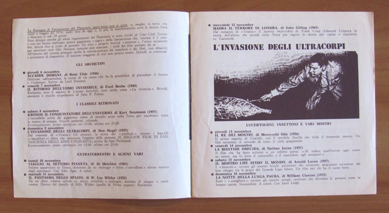 Brochure FANTASCIENZA CINE CLUB TEVERE, 1975/76 Rassegna Cinematografica