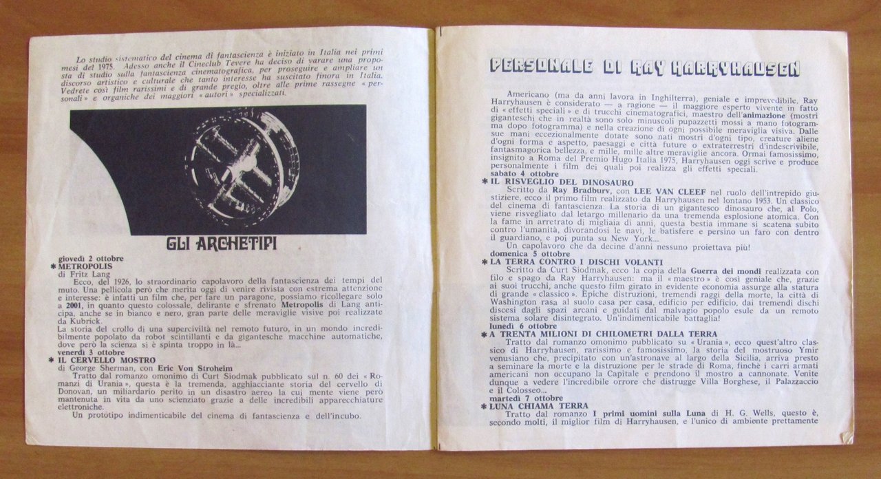 Brochure FANTASCIENZA CINE CLUB TEVERE, 1975 Rassegna Cinematografica