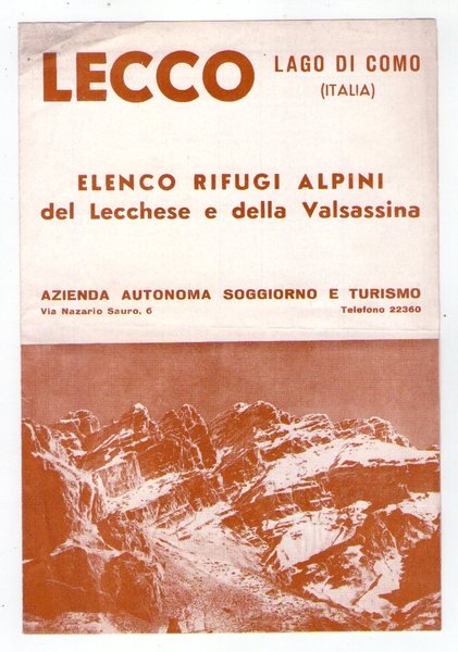 Brochure "LECCO - LAGO DI COMO. Elenco rifugi alpini del Lucchese e della Valsassina"