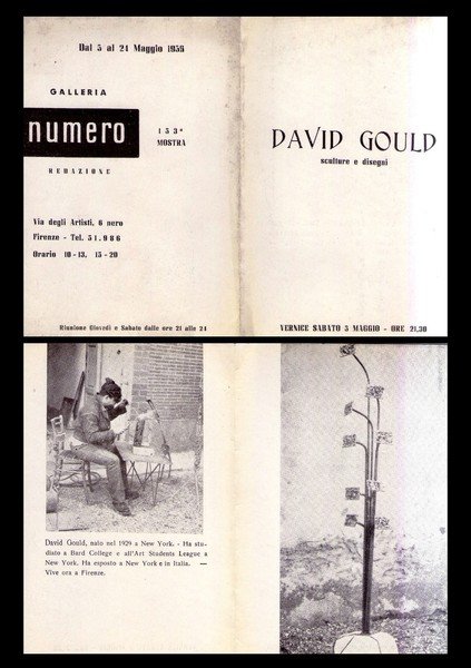 Brochure mostra 153° DAVID GOULD sculture e disegni. Galleria NUMERO - Firenze dal 5 maggio 1956