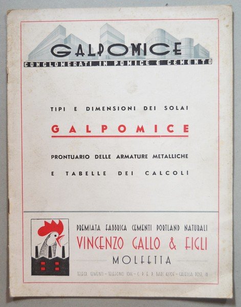 Brochure "Tipi e dimensioni dei solai GALPOMICE Conglomerati in pomice e cemento" Prontuario e tabelle dei calcoli. Premiata Fabbrica Cementi Portland Naturali VINCENZO GALLO - Molfetta