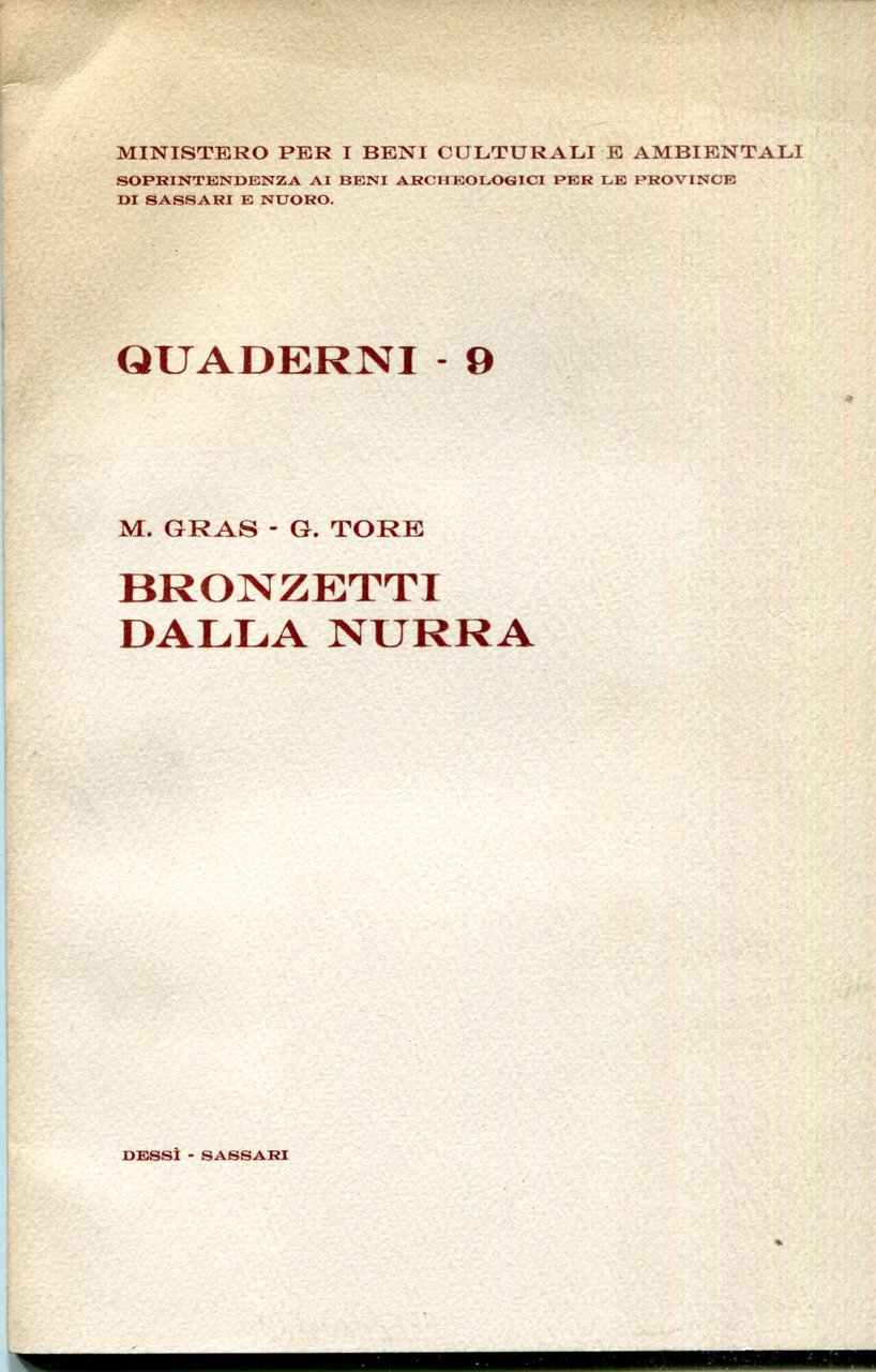 34 pagine con 5 tav. : ill. ; 24 cm. brossura. Collezione: Quaderni / Soprintendenza ai beni archeologici per le provincie di Sassari e Nuoro 9. Titolo della copertina: Bronzetti dalla Nurra Molto buono (Very Good) .