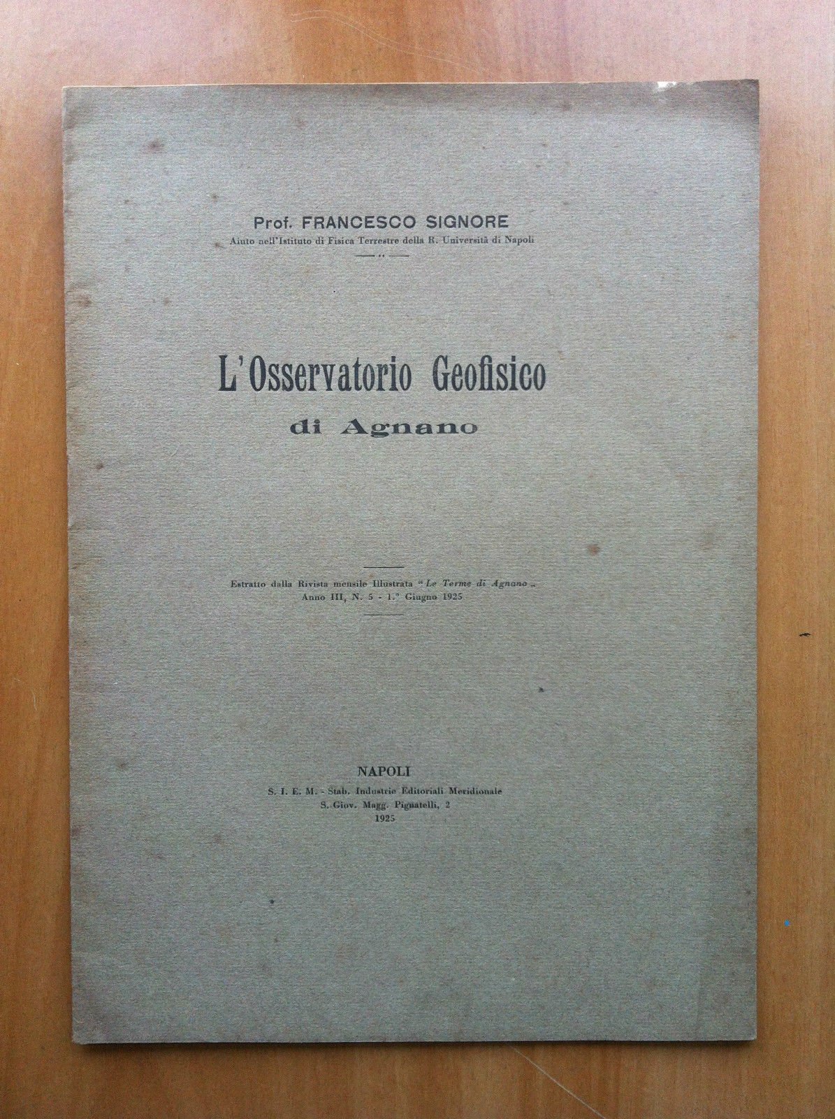 L'OSSERVATORIO GEOFISICOdi AgnanoProf. Francesco SignoreNapoli 192512 pagine intonse - formato 15x21 cm in ottimo stato (gr. 20)E15774