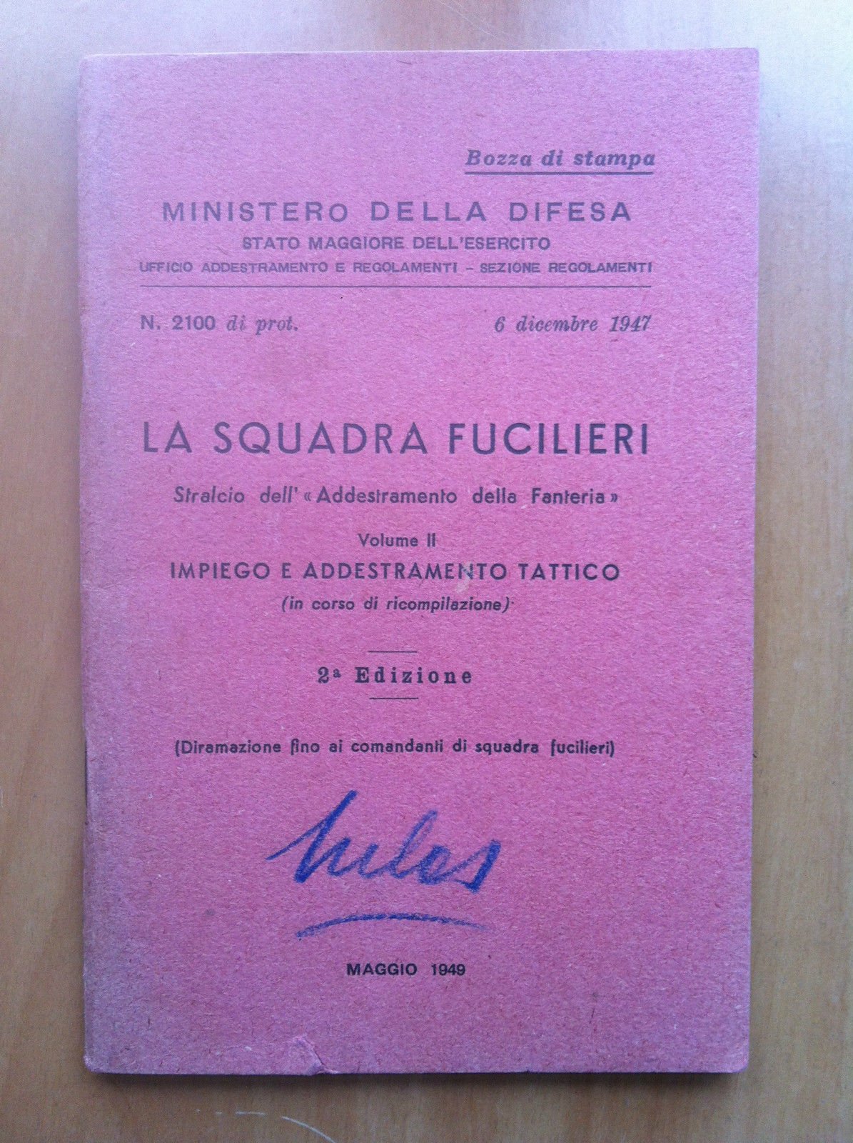 LA SQUADRA DEI FUCILIERIBozza di stampaMinistero della difesa Stato Maggiore dell'EsercitoStralcio dell'Addestramento della Fanteria Volume IIImpiego e addestramento tattico 2^ edizioneMaggio 194979 pagine - formato 12x18 cmin ottimo stato ( gr 65)E16493