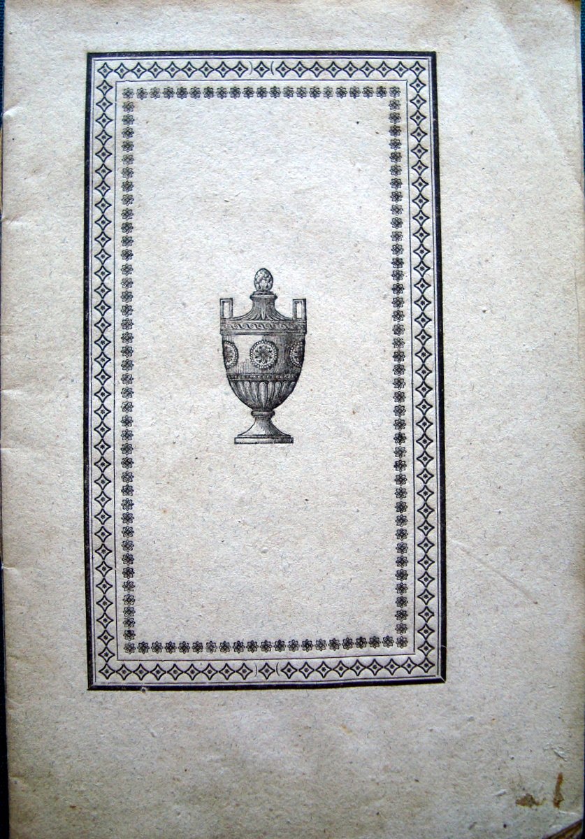 Brossura ed., 'LE IRIDI COLTIVATE' PER LE AUSPICATE NOZZE GAUDIO-MENEGHINI Tip.Minerva Padova, 1823 18,20 x 12,20 cm., pp 15, bella br.ed. con cornice, Condizioni di conservazione. buono stato con leggere tracce d'uso e del tempo, bruniture e alcune macchiette, piccoli strappetti e pieghette, alcune macchie e aloni di gore agli interni IN QUESTA ENUMERAZIONE L'ACCREDITATA OPERA' Il Botanico Coltivatore' DEL SIG. DUMONT DE COURSET HA SERVITO DI GUIDA OPEB.2693 BLU