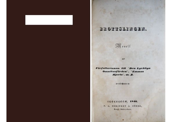 Brottslingen. Novell. Af författarinnan till "Den lyckliga omnibusfärden" , "Emmas hjerta," m. fl.