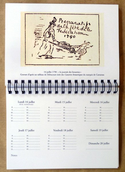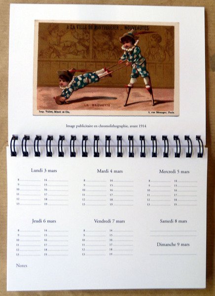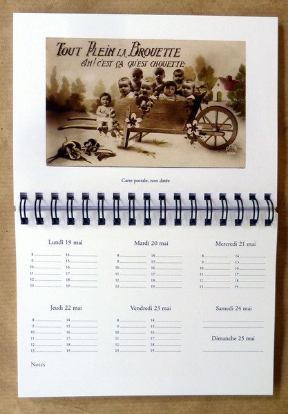 Un calendrier de format 15x11 cm; de 110 pp. plus couverture illustrée. Ce volume repertorie 63 reproductions d'images de "brouettes"; chromolithographies; cartes postales; dessins; plans; documents; le plus souvent en couleurs. Etat de neuf. Tirage limité à 500 exemplaires. Voir les photos.