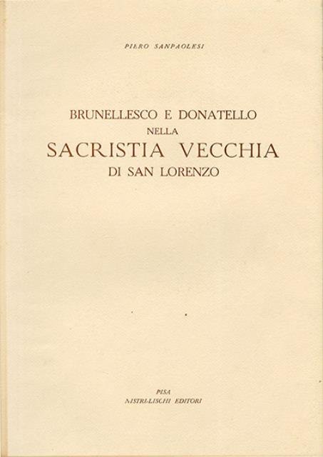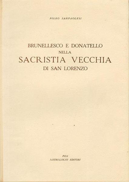 56 p., 75 c. di tav. : ill. ; 34 x 24 cm. Monografia dedicata allo studio della Sagrestia Vecchia, nella basilica di San Lorenzo di Firenze, uno dei capolavori di Filippo Brunelleschi e dell'architettura del primo Rinascimento in generale. Vi ha lavorato con importanti contributi scultorei anche Donatello. Venne completata nell'architettura dal 1419 al 1428, mentre la decorazione scultorea è databile tra il 1428 e il 1443. L'opera, che è l'unica che il grande architetto abbia curato fino al termine dei lavori, è stata ritenuta il paradigma di purezza geometrica ed eleganza lineare del suo percorso di architetto, che contiene in nuce elementi sviluppati in seguito, come la pianta nella Cappella dei Pazzi o le tribune morte del Duomo di Firenze. . Brossura editoriale, coperta in cartoncino flessibile con impresso il titolo al piatto, muto il dorso. All'interno 75 tavole illustrate su carta patinata lucida. Codice libreria 6063.