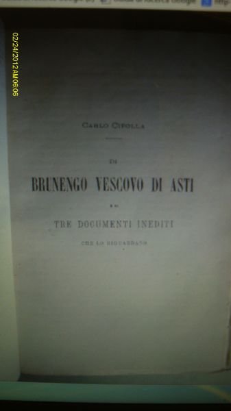 Brunengo Vescovo di Asti e di tre documenti inediti. Carlo Cipolla. 1890