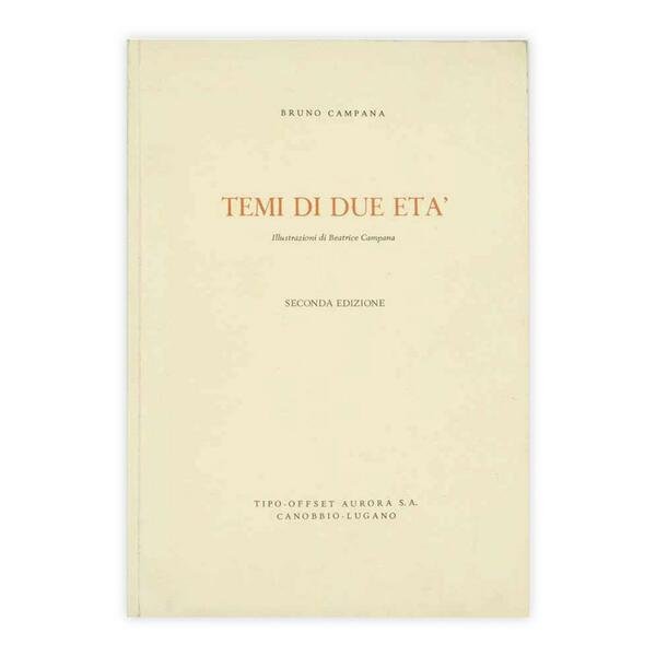 Autore: Bruno Campana Titolo: Temi di due età Edizione: Tipo-Offset Aurora s.a. Canobbio Lugano Dimensioni: 22x15,5 cm Pagine: 194 Copertina: Brossura Condizioni: Ottime come da foto