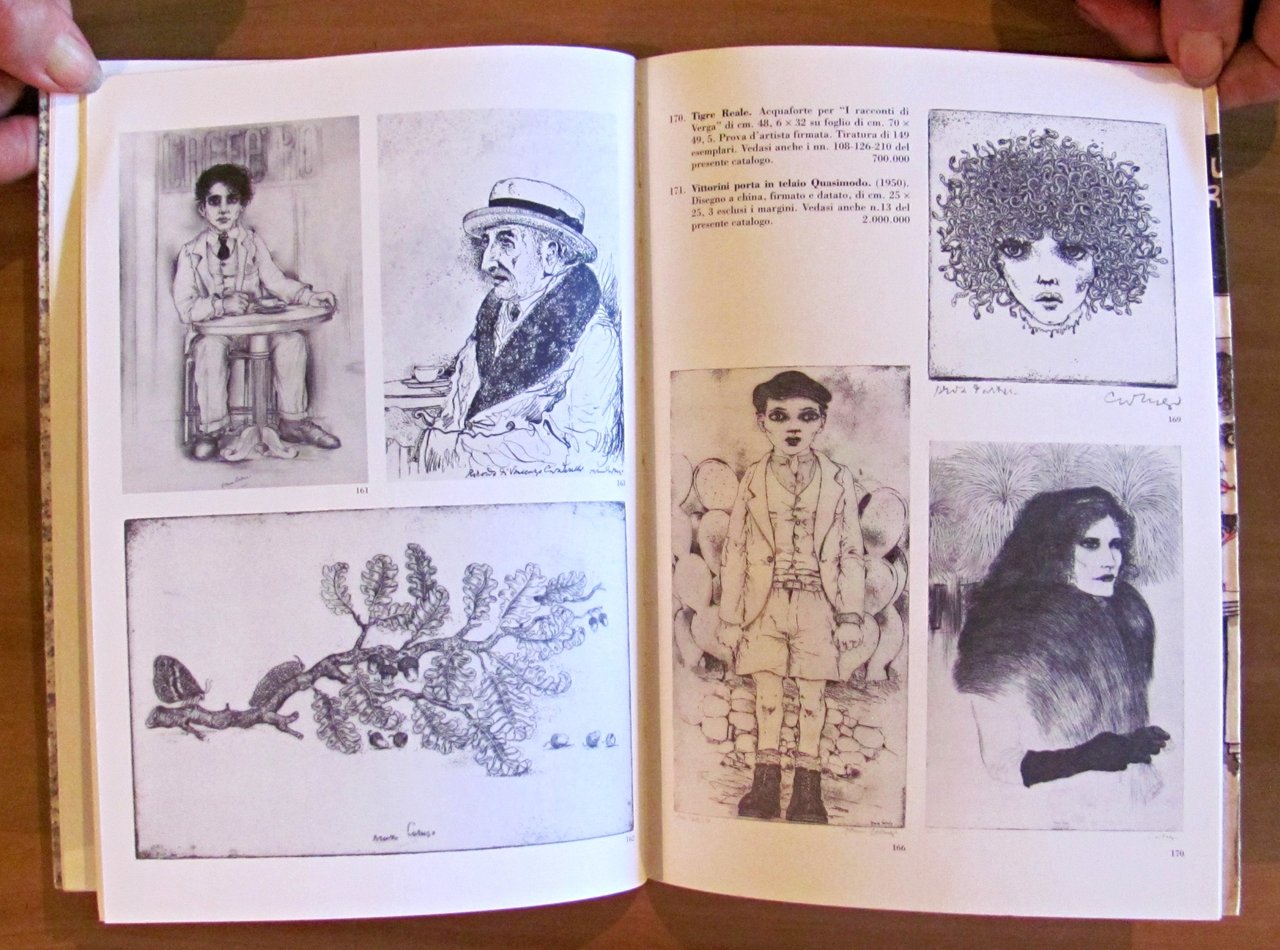 Acquaforte "Saturnina" originale firmata dall'artista allegata, sciolta e protetta da velina, solo alle prime 55 copie del Catalogo. 30 illustrazioni in b/n n.t. e 8 pagine con 18 illustrazioni a colori delle opere dell'artista, fra libri, monografie, disegni e acqueforti, pari a 212, in vendita nel presente catalogo. Ed. Libreria Maresca Riccardi - Roma, 1998. Catalogo in brossura editoriale con ali. 17x24; Acquaforte 15x22. RARO e in STATO DI NUOVO , Perfetto (Mint)
