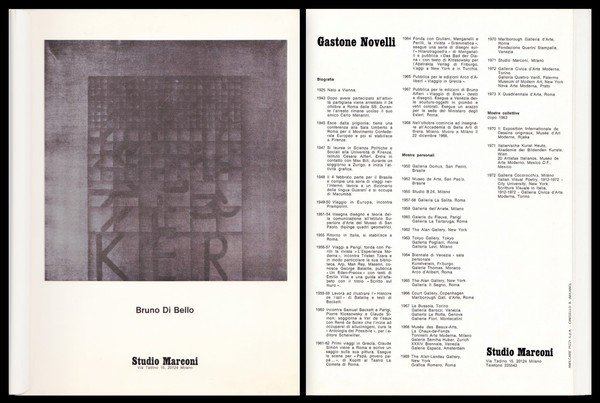 Bruno Di Bello. Gastone Novelli, Disegni dal 1960 al 1967. Studio Marconi Milano. 16 gennaio 1974. Testo di Renato Barilli e Hans Gerd Tuchel.