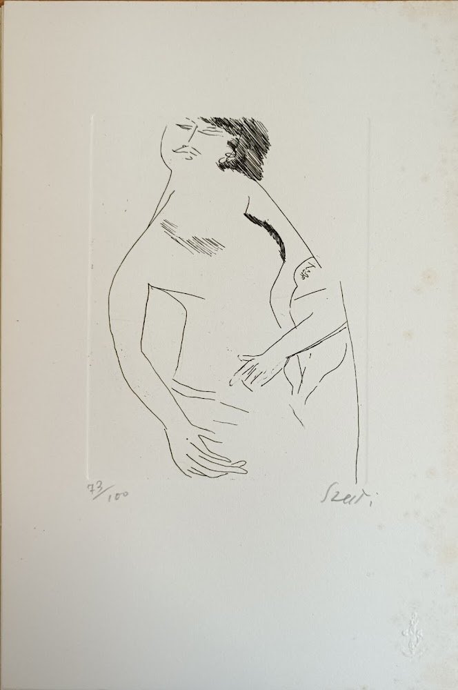 Tiratura 73/100. acquaforte inciso cm. 15,5 x 12 - foglio cm. 29,5 x 21 cartellina, vol. in brossura pp. non numerate Buono (Good) Buon es., difetti alla cartellina e all'acquaforte.