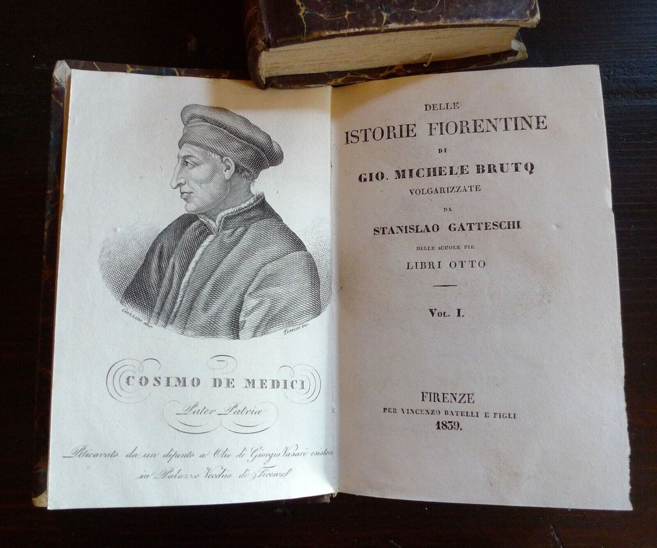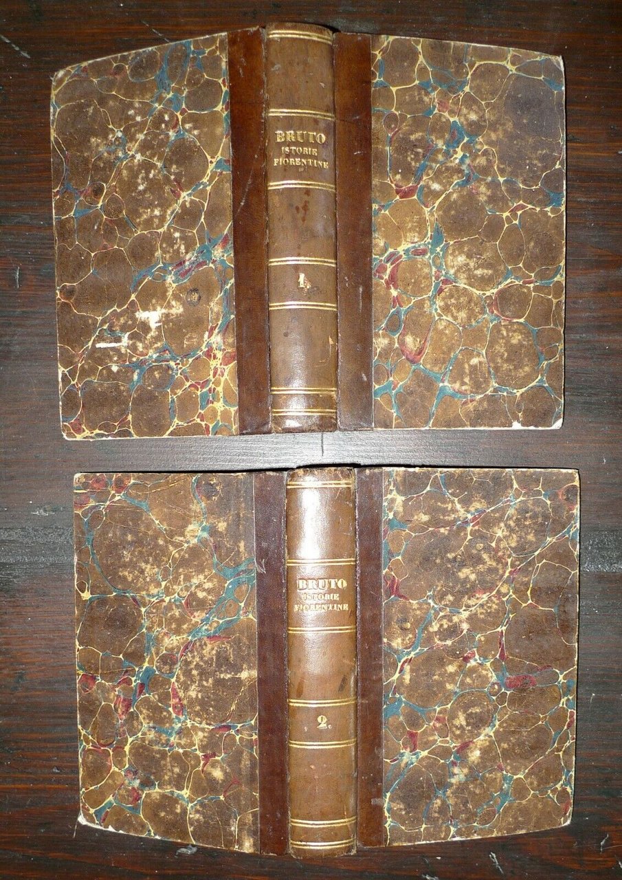 DELLE ISTORIE FIORENTINEDI GIO. MICHELE BRUTOVOLGARIZZATE DA STANISLAO GATTESCHIDELLE SCUOLE PIE.LIBRI OTTO.VOL.I - VOL.II [OPERA COMPLETA].FIRENZE, PER VINCENZO BATELLI E FIGLI, 1839,copertina rigida, rilegatura in mezza pelle,17x11 cm., pp.LXX-381; 482,con i ritratti di Cosimo e Pietro De Medicialle antiporte,peso: g.750