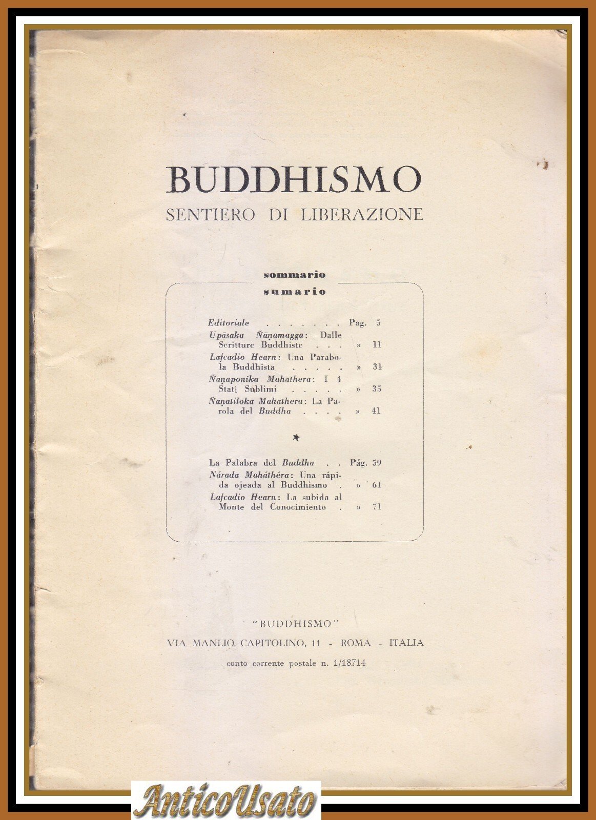 BUDDHISMO sentiero di liberazione 1959 Rivista Anno I numero 1 Buddismo