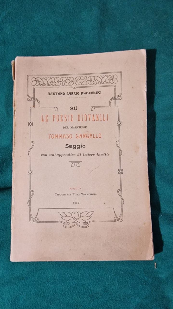 BUFARDECI SU LE POESIE GIOVANILI DEL MARCHESE TOMMASO GARGALLO SAGGIO CON UN APPENDICE DI LETTERE INEDITE