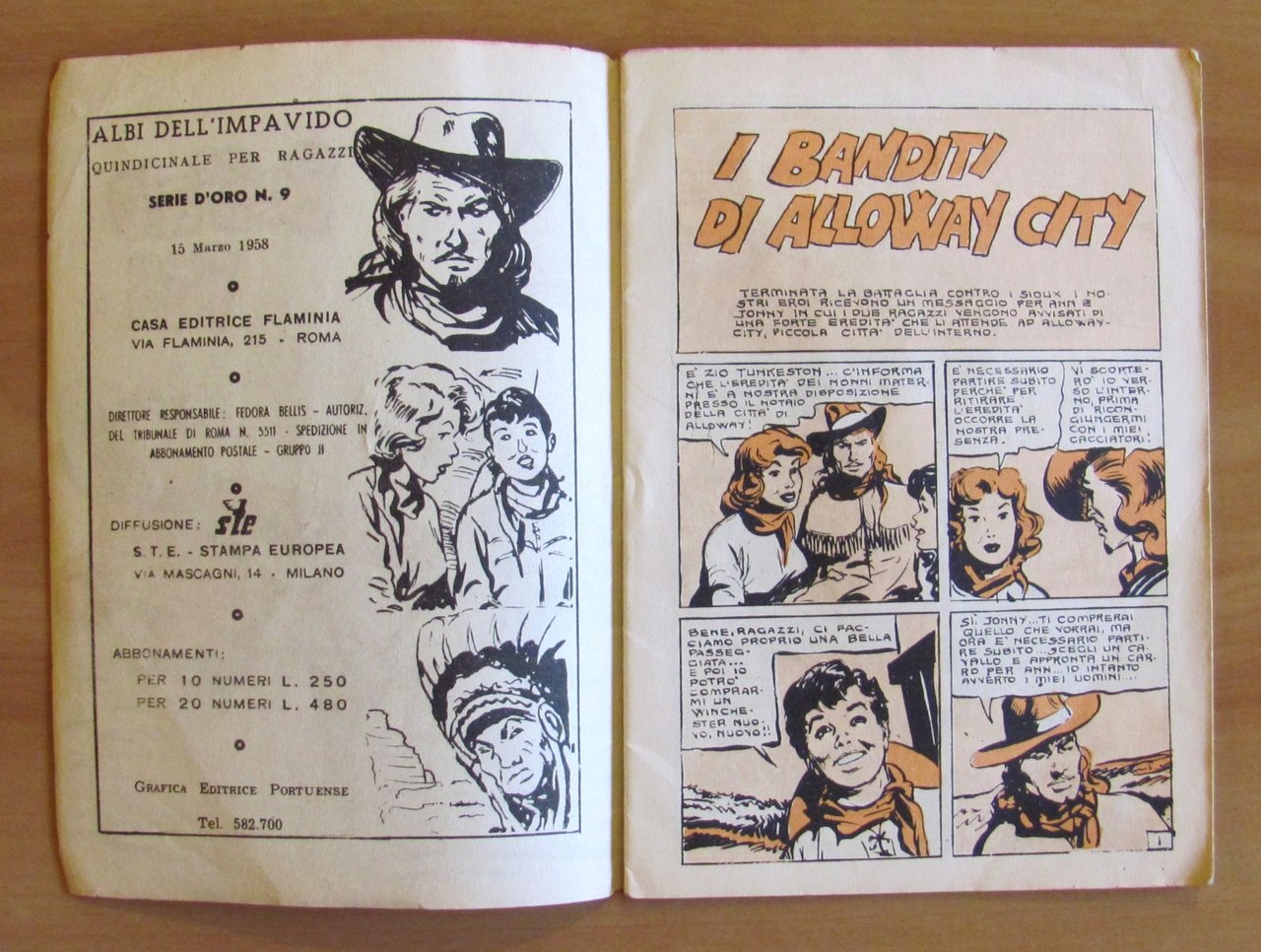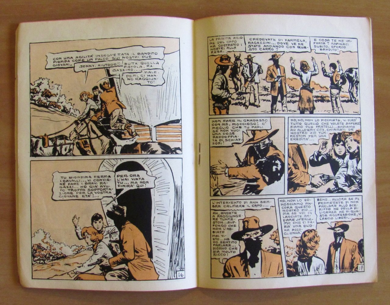 I banditi di Alloway City. Illustrazioni a colori alle copertine e in b/n e in tricromia n.t., a pagine alterne, di Guido Buzzelli. Casa Editrice Flaminia - Roma, 1958. Albo spillato in brossura editoriale. 12x17; pp.32. Molto Raro e in Ottimo stato. , Molto buono (Very Good)