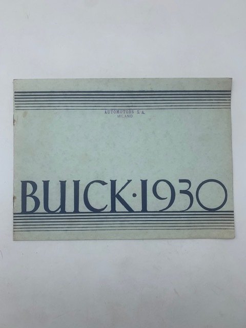 In 8 oblungo (cm 27 x 20), pp. (4) con 3 illustrazioni nel testo (1 della Buick 1930 Sedan e 2 più piccole degli interni). Timbro al piatto anteriore e al contropiatto. Brossura editoriale. Brochure in lingua francese relativa all'automobile Buick 1930 Sedan, definita la più grande di tutte le Buick. All'ultima pagina è presente un elenco con tutti i modelli della vettura.