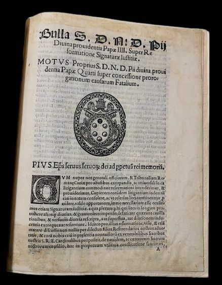 Bulla S. D. A: D. Pii Divina providentia Papae IIII. Super Reformatione Signaturae Iustitiae. Motus Proprius S. D. N. D. Pii Divina providentia Papae Quarti super concessione prorogationum causarum Fatlium.