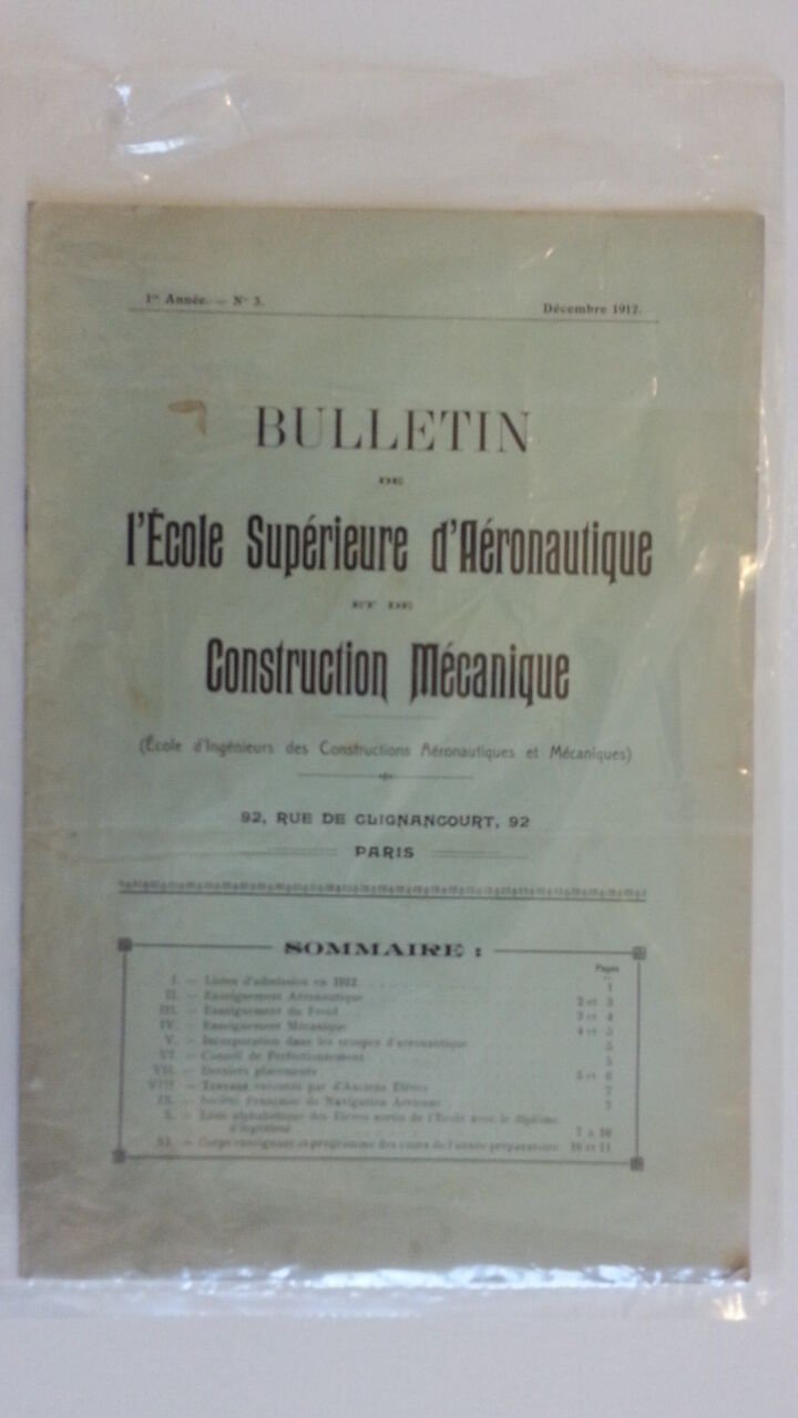 BULLETIN DE L'ECOLE SUPERIEURE D'AERONAUTIQUE ET DE CONSTRUCION MECANIQUE 1° ANNEE N. 3 DECEMBRE 1912In
