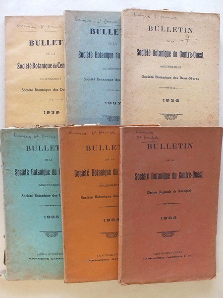 Bulletin de la Société Botanique du Centre-Ouest anciennement Société Botanique des Deux-Sèvres. [ Lot de 6 bulletins ] Années 1933 - 1934 - 1935 - 1936 - 1937 - 1939