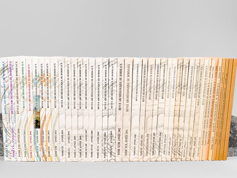 42 numéros in-4 br., Société Archéologique de Bordeaux, 1976-2020. Rappel du titre complet : Bulletin et Mémoires de la Société Archéologique de Bordeaux [Puis :] Revue Archéologique de Bordeaux (Série suivie de 42 Volumes, du Tome LXXI : Années 1976-1978 au Tome CXII : Année 2020) [ Contient : ] Tome LXXI : Années 1976-1978 - Tome LXXII : Années 1979-1981 - Tome LXXIII 1982 - Tome LXXIV 1983 - Tome LXXV 1984 - Tome LXXVI 1985 - Tome LXXVII 1986 - Tome LXXVIII 1987 - Tome LXXIX 1988 - Tome LXXX 1989 - Tome LXXXI 1990 - Tome LXXXII 1991 - Tome LXXXIII 1992 - Tome LXXXIV 1993 - Tome LXXXV 1994 - Tome LXXXVI 1995 - Tome LXXXVII 1996 - Tome LXXXVIII 1997 - Tome LXXXIX 1998 - Tome XC 1999 - Tome XCI 2000 - Tome XCII 2001 - Tome XCIII 2002 - Tome XCIV 2003 - Tome XCV 2004 - Tome XCVI 2005 - Tome XCVII 2006 - Tome XCVIII 2007 - Tome XCIX 2008 - Tome C 2009 - Tome CI 2010 - Tome CII 2011 - Tome CIII 2012 - Tome CIV 2013 - Tome CV 2014 - Tome CVI 2015 - Tome CVII 2016 - Tome CVIII 2017 - Tome CIX 2018 - Tome CX 2018 - Tome CXI 2019 - Tome CXII 2020