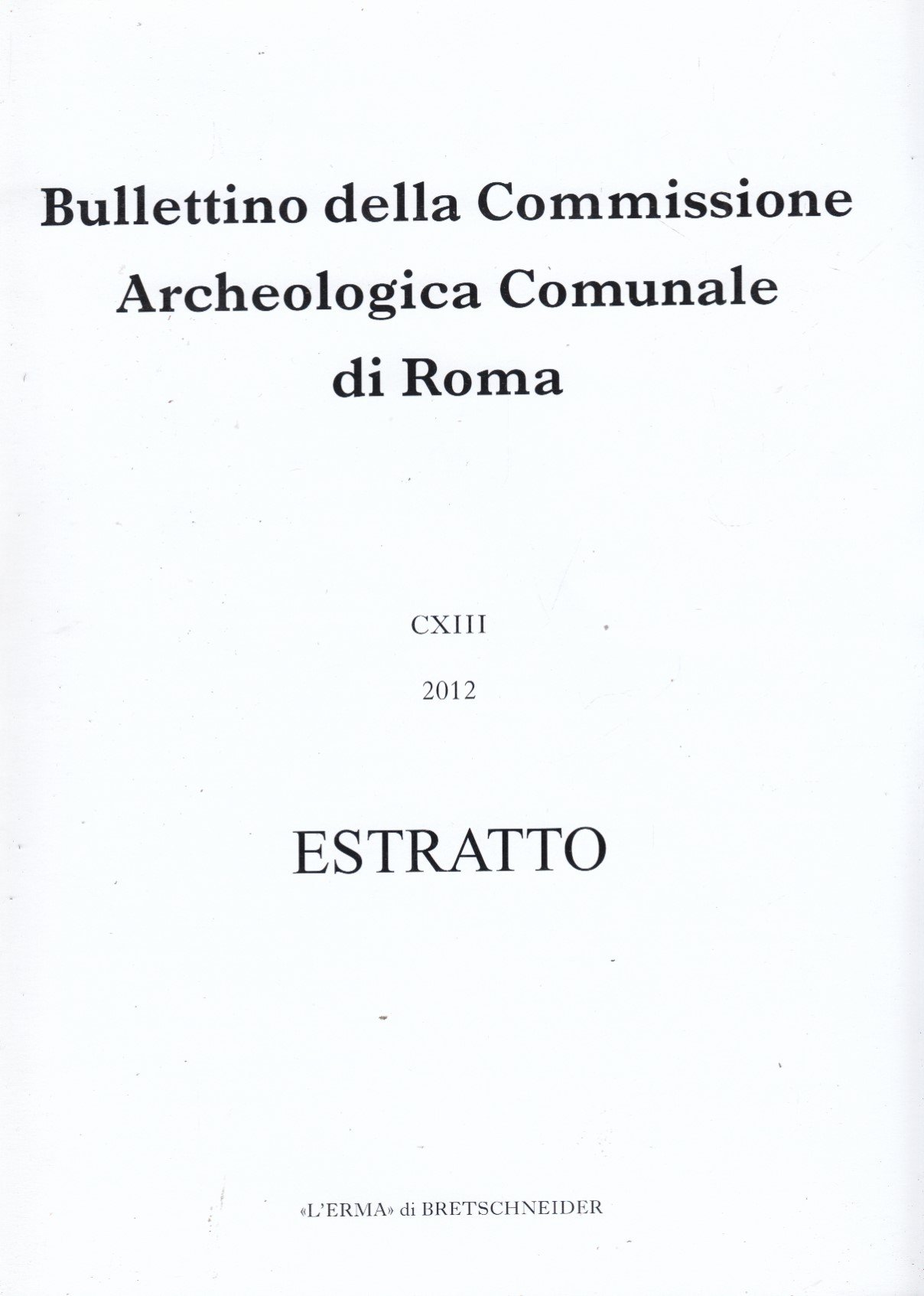 Bullettino della Commissione Archeologica Comunale di Roma CXIII 2012 Estratto. Il tempio presso S. Salvatore in Campo: Lo stato in questione