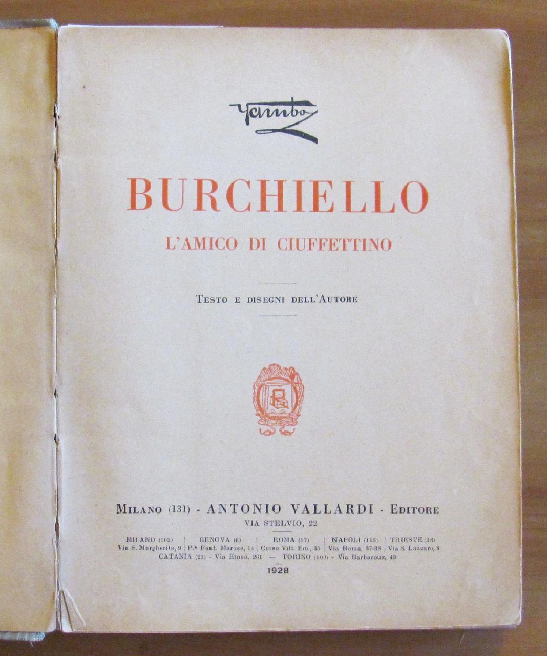 Moltissime illustrazioni in b/n n.t., di cui 14 a piena pagina, di Yambo. Editore Vallardi - Milano, 1928. Tela editoriale con minime imperfezioni della tela alle cuffie del dorso. Lieve allentamento delle cerniere interne alle sole copertine con leggera spellatura della carta alle stesse. Taglietto al margine basso dell'ultima pagina di indice. Libro perfettamente legato e pulito. 17x21,5; pp.102. Raro, Buonissimo stato. , Molto buono (Very Good)