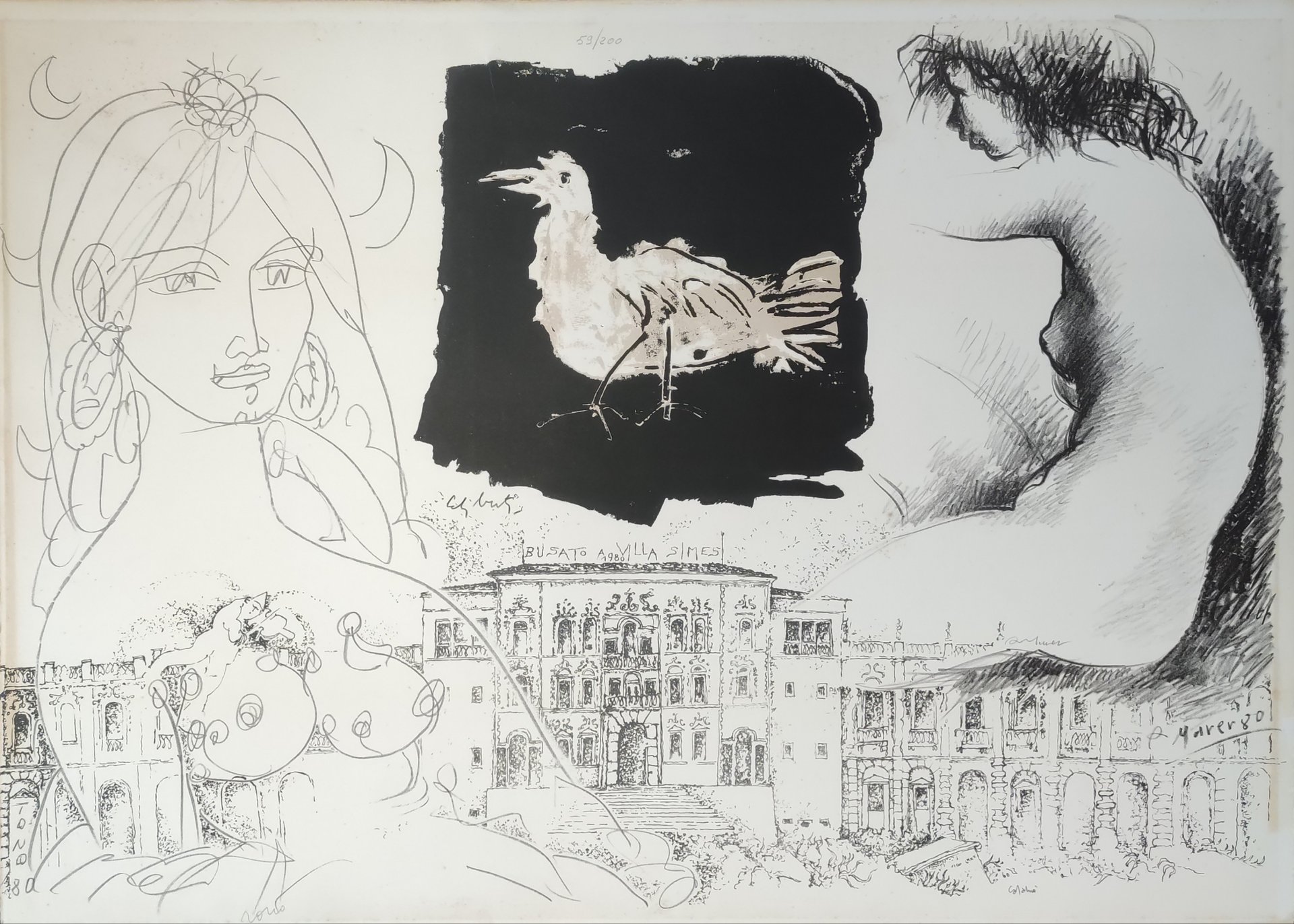 Tiratura 59/200. litografia a quattro mani cm. 70 x 50,5 Buono (Good) Buon es..