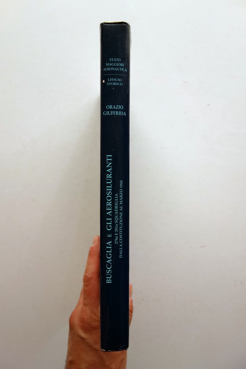 Orazio Giuffrida, Stato Maggiore Aeronautica - Ufficio Storico - Buscaglia e gli aerosiluranti (278a e 281a squadriglia: dalla costituzione al marzo 1942) Stato Maggiore Aeronautica - Uffico Storico, Roma 1998; cm 29,5x21,5; pp. 410 con numerose ill. in b/n; tutto cartonato ed. con sovraccoperta ed. ill. a colori. Condizioni di conservazione Condizioni più che discrete con leggere tracce d'uso; piatto posteriore e bandella posteriore della sovraccoperta ed. lievemente ondulati e con tracce di umidità (vedi foto); margine superiore dell'ultimo centinaio di pagine con lievi circoscritte ondulazioni, alle pp. 406-410 con abrasioni da distacco che non interessano il testo; interni peraltro molto ben conservati. Molto approfondito e dettagliato sull'argomento. Non comune. In condizioni come da foto e descrizione. SETT58.L23740 N