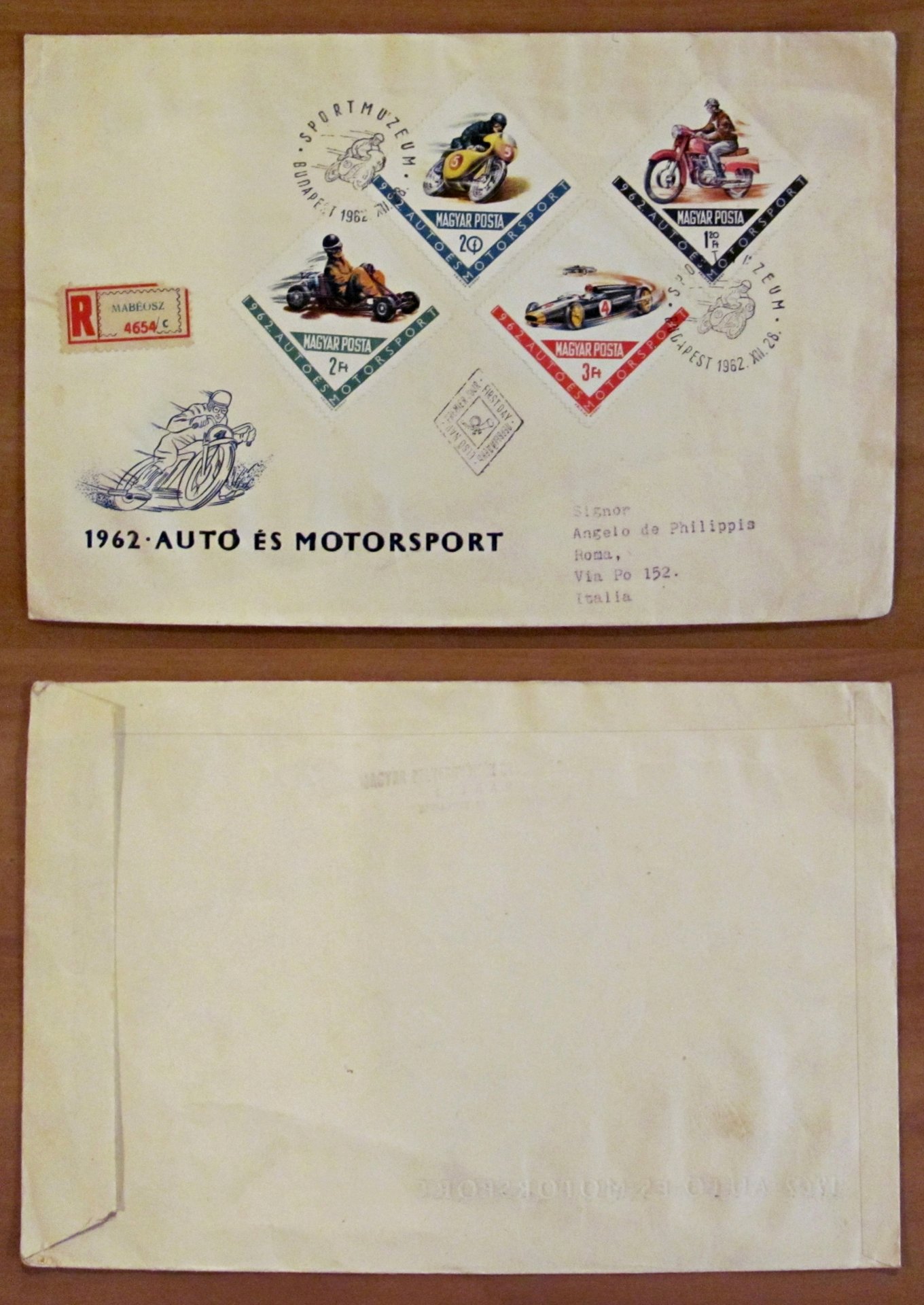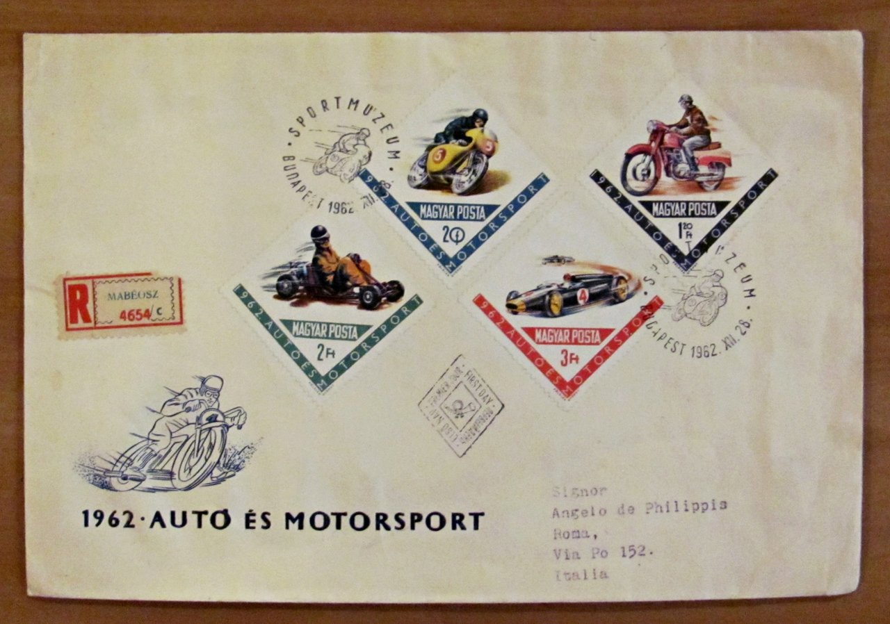 Busta AUTO ES MOTORSPORT con 4 Francobolli Magyar Posta, 1962 - Sport Museum