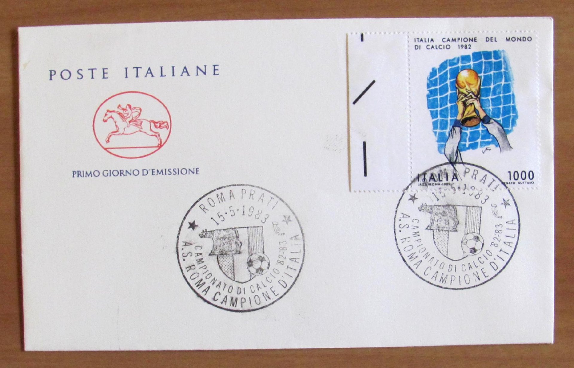 Busta I^ Giorno FDC - Timbri ROMA CAMPIONE D'ITALIA 1983 e Francobollo ITALIA CAMPIONE del MONDO di CALCIO 1982