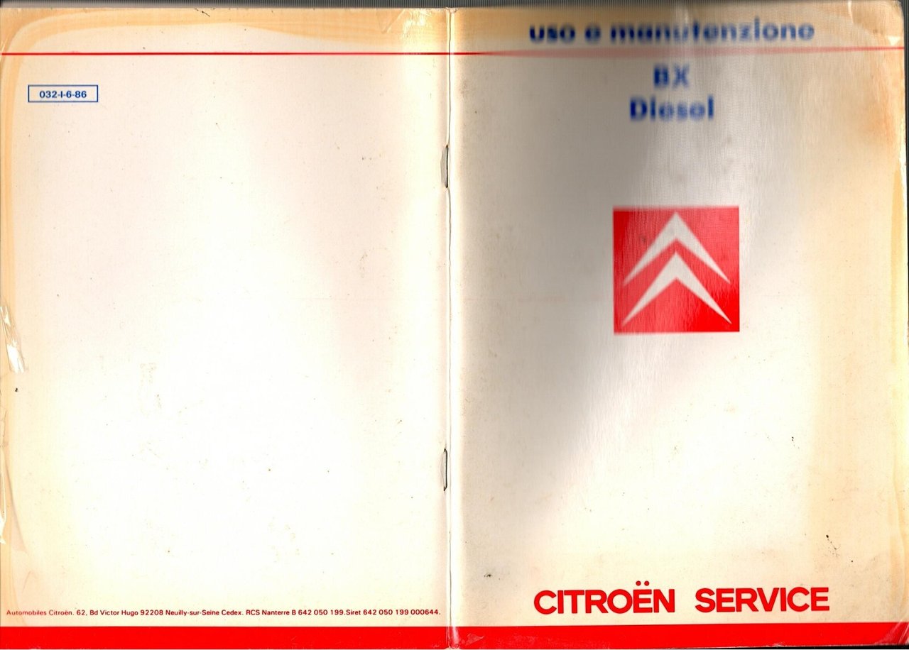BX DIESEL USO E MANUTENZIONE 1986 Citroen Service Libro automobile car libretto